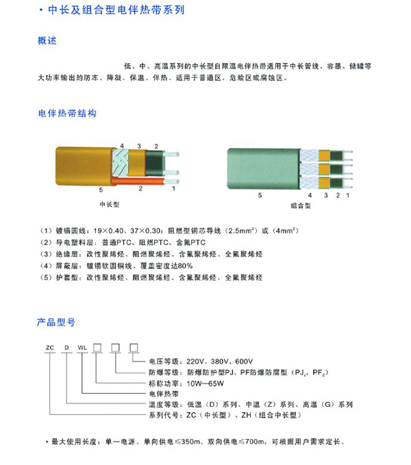 • 產(chǎn)品名稱:中長及組合型電伴熱電纜