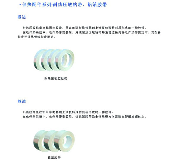 • 產(chǎn)品名稱:伴熱配件系列—耐熱壓敏粘帶、鋁箔膠帶